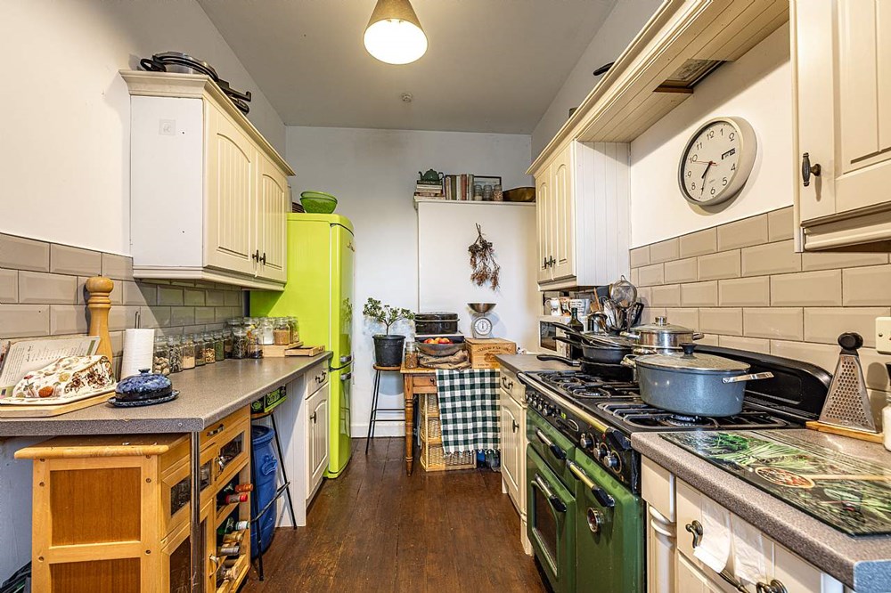 Boasting a generous internal floor area of approximately 87m², the apartment offers light-filled rooms with a warm, inviting atmosphere. The accommodation is well laid out with a spacious living room, a fully equipped kitchen, and two comfortable bedrooms, each offering the ideal balance of practicality and character. The property’s age is reflected in the delightful period details throughout, which enhance its charm while maintaining modern functionality.