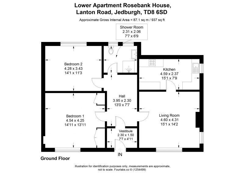 Lower Apartment, Rosebank House presents a charming and characterful ground floor flat that blends the appeal of a historic property with the convenience of modern living. Located in the heart of Jedburgh, this 150-year-old home is one of only two apartments within a converted three-storey house and attached cottage, offering both privacy and a strong sense of community.