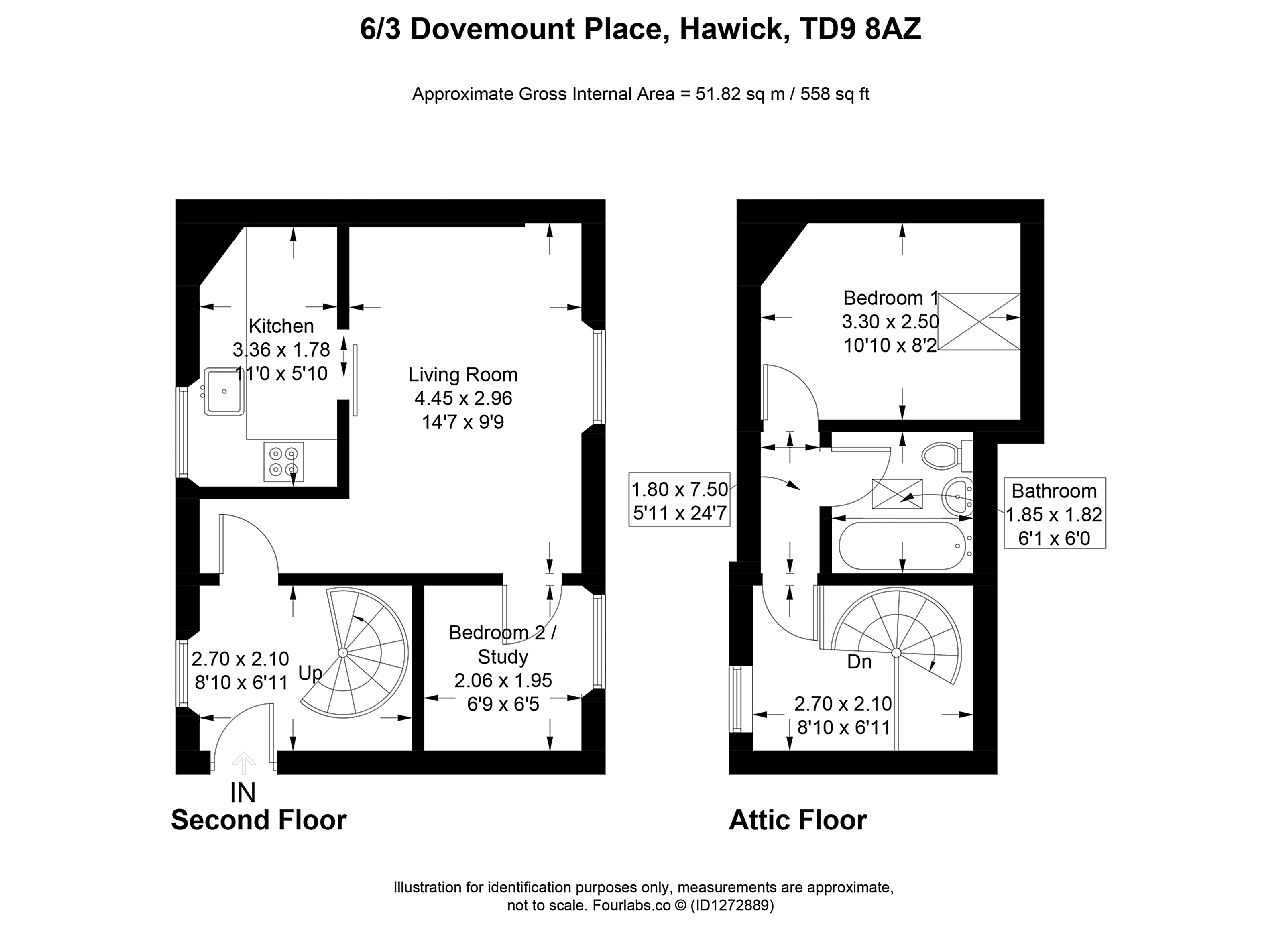Nestled in a convenient location, 6-3 Dovemount Place is a well-proportioned two-bedroom maisonette spread over the second and attic floors. The property greets you with a welcoming entrance hallway that leads into a bright lounge, complete with an adjoining kitchen. A handy box room adds a versatile space to the property - ideally suited as a nursery or office, while a beautifully crafted spiral staircase takes you to the attic level.