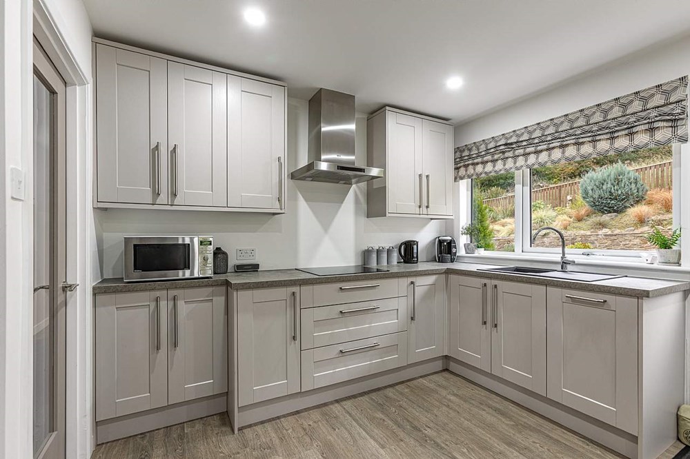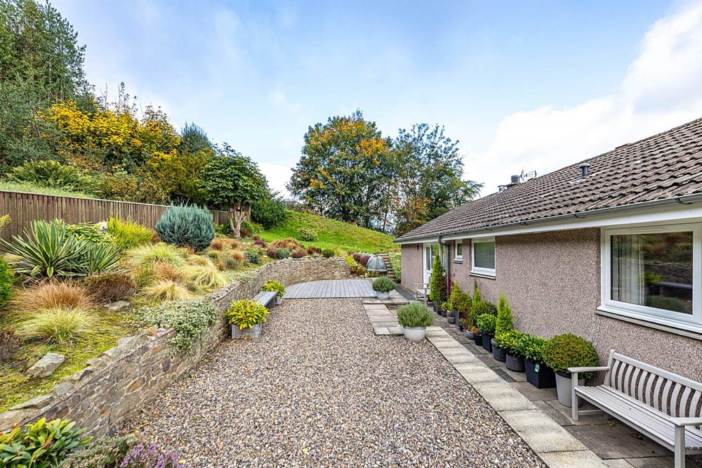 Rowan Bank is a truly stunning detached bungalow, beautifully positioned in a peaceful and very private location with breathtaking views over Galashiels. Completely refurbished to an exacting standard by the current owners, the property showcases high-quality fittings and a contemporary finish throughout. The accommodation is spacious and thoughtfully designed, featuring a large lounge, fantastic dining kitchen, master bedroom with en-suite shower room, two further double bedrooms, a beautiful shower room and a useful utility room/WC. Surrounded by a generous landscaped garden, the home also benefits from private parking and an additional area of land to the front offering potential for further parking, if required. An outstanding home in a wonderful location – early viewing is strongly recommended.