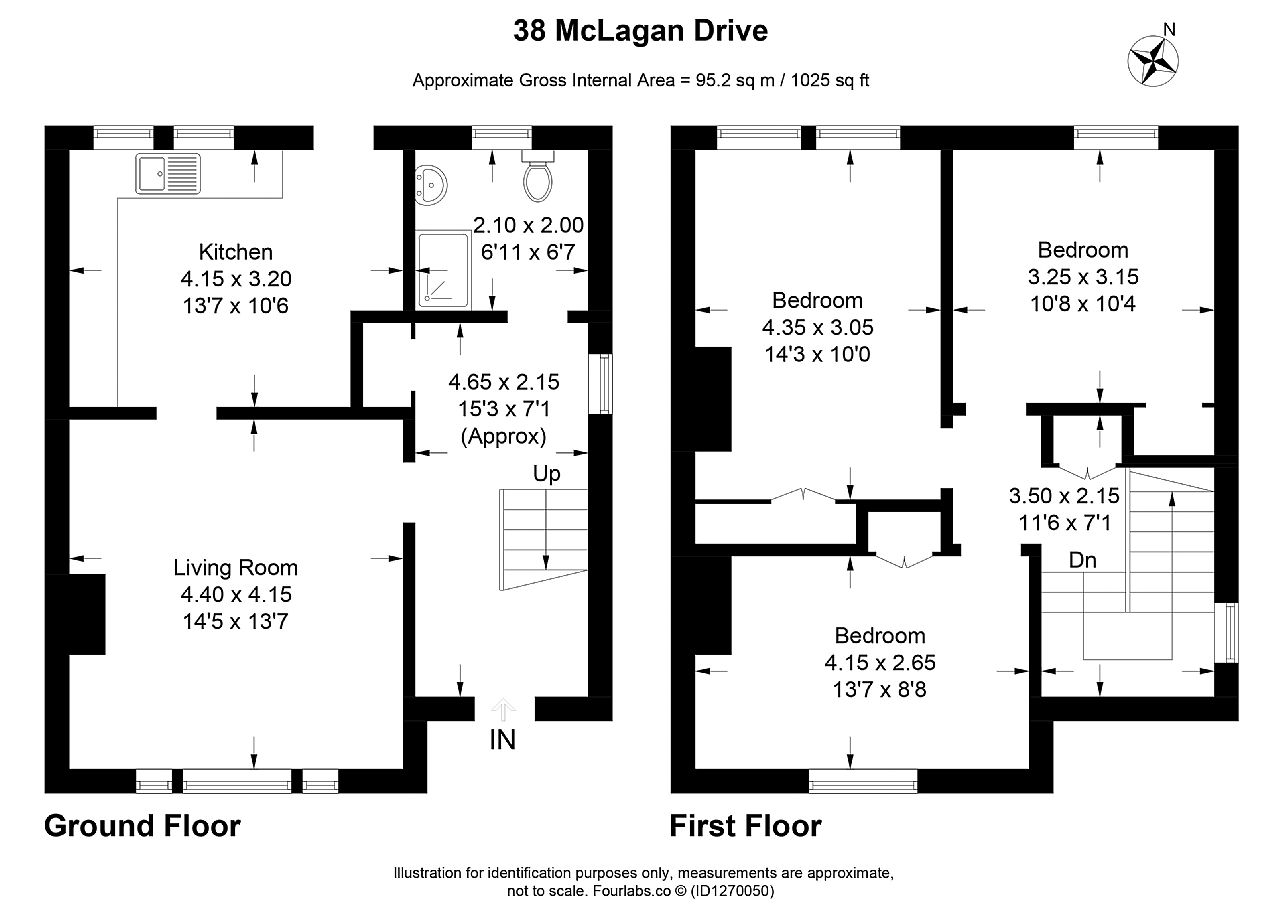 The accommodation is arranged over two levels and comprises an entrance hallway, a spacious lounge with adjoining kitchen, and a family bathroom on the ground floor. Upstairs, there are three well-proportioned double bedrooms, all benefiting from built-in storage.