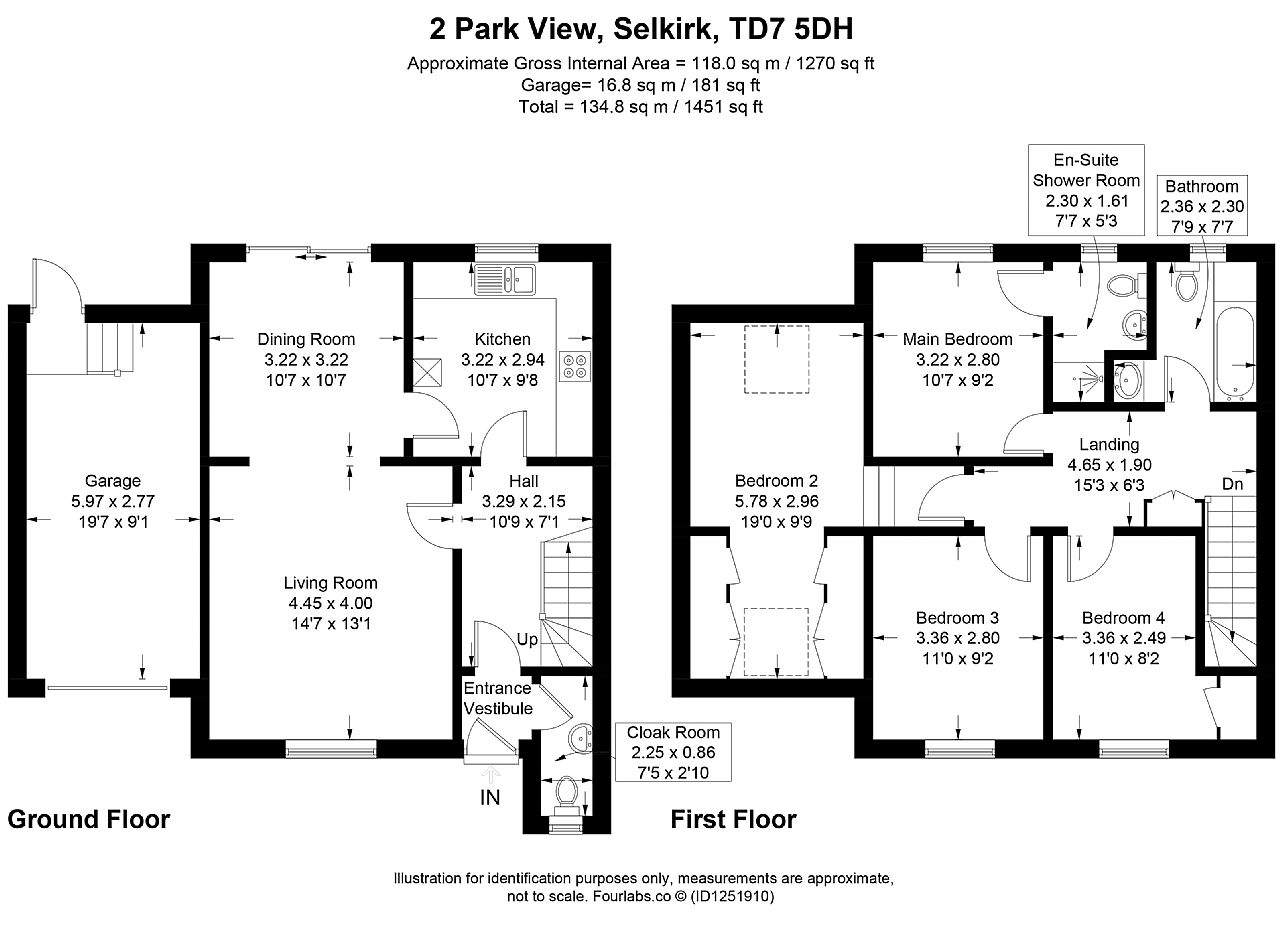 2 Park View is a deceptively spacious four bedroom property, situated within a small modern development close to Selkirk Leisure Centre, enjoying an open outlook and ideally placed for riverside and country walks. The accommodation is generously proportioned throughout, boasting a large lounge/dining room, master bedroom with en-suite shower room and three further bedrooms, one having the benefit of a dressing area. There is a family bathroom at first floor level and a further WC at ground floor level. Externally, the property benefits from private garden to both front and rear together with a driveway and garage providing ample off street parking.