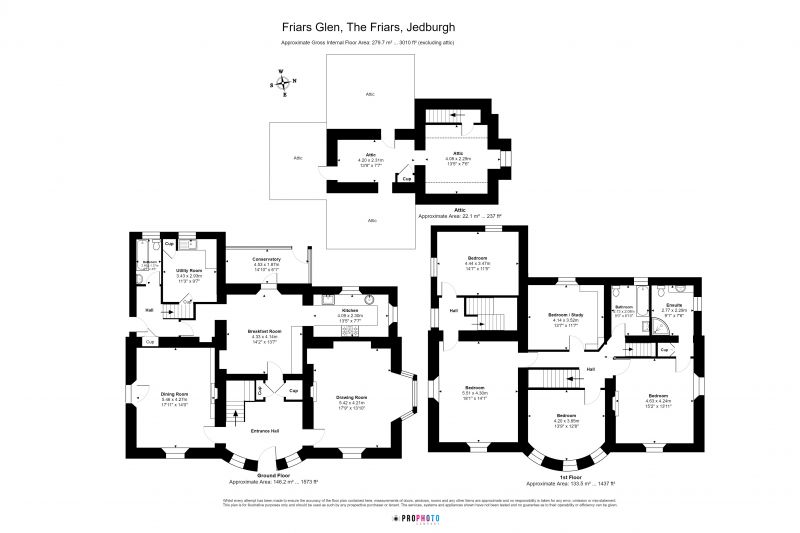 Externally, the property sits within surrounding garden grounds and benefits from a multi-car driveway, adding to its appeal and long-term potential. The setting, scale, and plot size are increasingly rare within Jedburgh, particularly within such a prestigious address.